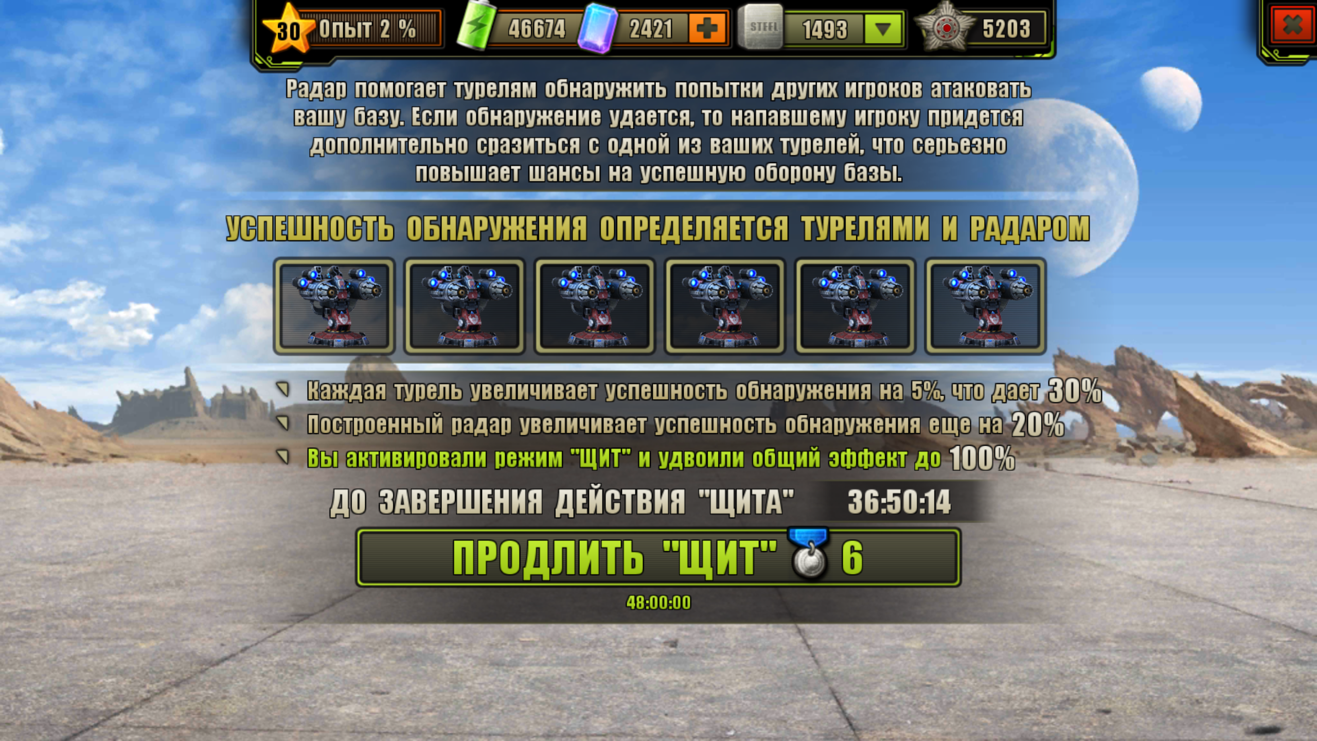 Нужно купить радар в тактике и стратегии, построить его, и потом можно будет уже включить щит, когда нажмёшь на него.